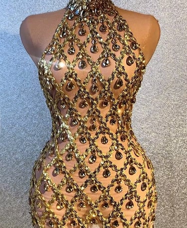 Ce qui distingue cette mini-robe de soirée, ce sont les détails soigneusement pensés. Le col haut ajoute une touche de sophistication, tandis que le dos nu apporte une note de sensualité. La robe est également dotée d'une transparence subtile permettant de montrer juste ce qu'il faut de peau pour un look irrésistible.